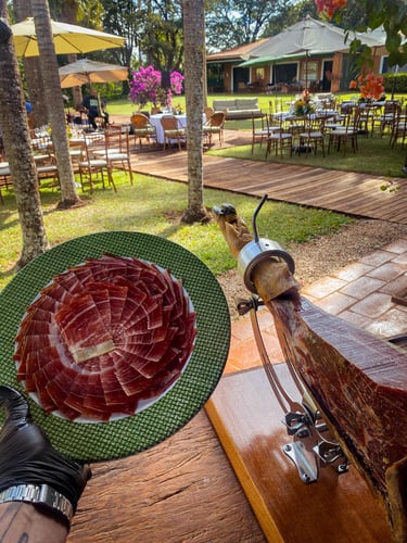 Jamón ibérico, elegância e sabor intenso em cada fatia.
