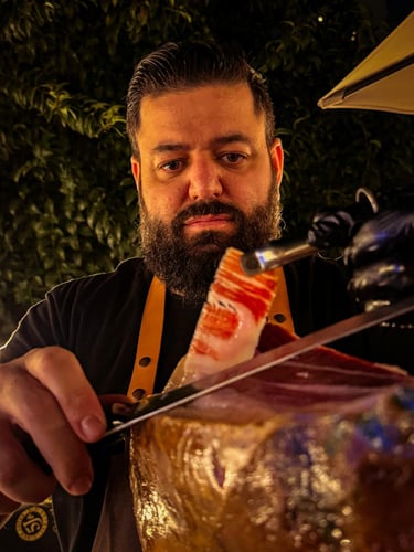 Sou cortador profissional de jamón há 3 anos, especializado em técnicas tradicionais espanholas de corte e no máximo aproveitamento da peça. Meu serviço vai além da gastronomia, entrego uma experiência performática e cultural que transforma o jamón na atração central do evento.